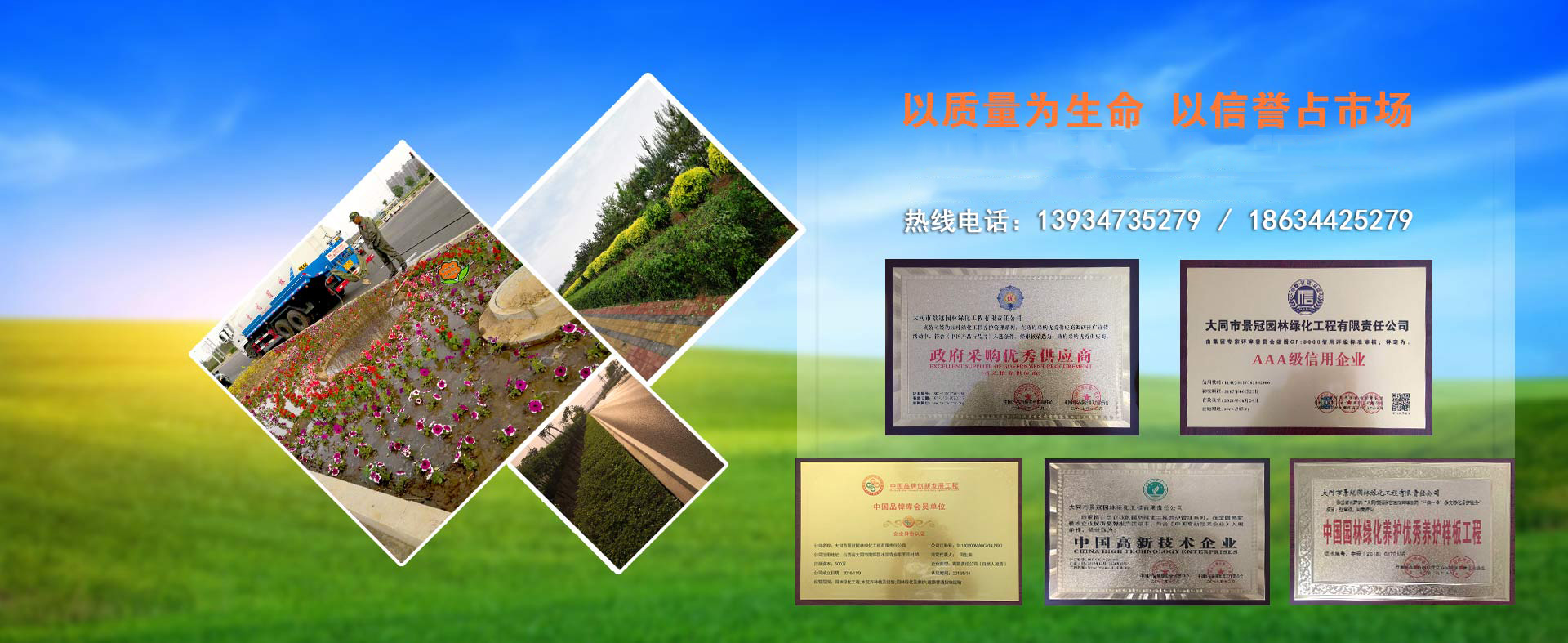 大同市景冠園林綠化工程有限責任公司是一家根植于設計、施工、植保養(yǎng)護、苗木花卉生產于一體的園林景觀企業(yè)。公司“以質量為生命”、“以信譽求發(fā)展”這是公司一貫的經營宗旨。并以創(chuàng)新,誠信,綠色,共享的發(fā)展理念,創(chuàng)造良好的企業(yè)環(huán)境。堅持愛綠,護綠,保綠的方針為城市增添一份綠色,用綠色擔當生態(tài)建設使命是我們共同追求的價值和企業(yè)目標。以全新的管理模式,完善的技術,周到的服務,卓越的品質為生存根本。幾年來我們致力于園林景觀植物領域的研究,在城市綜合體景觀,校園園林景觀,道路景觀,生態(tài)農業(yè)景觀,美麗鄉(xiāng)村景觀,濕地景觀等多個領域參與規(guī)劃設計施工。不斷加大科技投入力度,加強人才的儲備,網(wǎng)絡技術的培訓,提升自主創(chuàng)新能力,不斷完善企業(yè)文化,用超前的技術制定出一套完整的園林植保技術管理方案。我們堅持以擔當為使命,用戶至上,服務至上,秉持初衷,不忘初心,實實在在,心無旁騖做好植保養(yǎng)護主業(yè),打造屬于自己的企業(yè)品牌,好好服務客戶,打動客戶。
